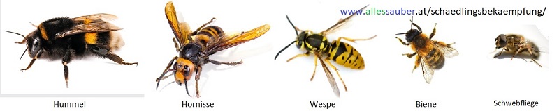 Bilder Vergleich Hummel, Hornisse, Wespe, Schwebfliege